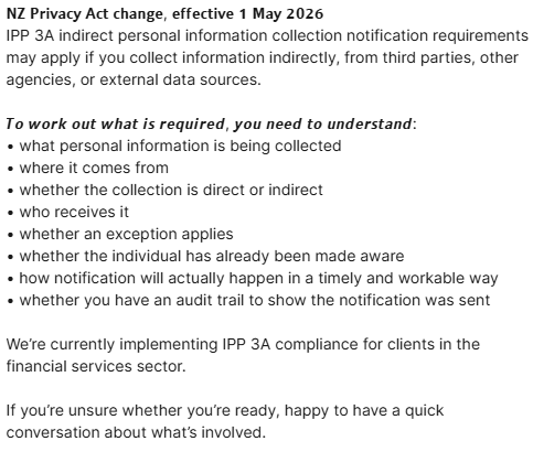 IPP 3A indirect personal information collection notification requirements may apply if you collect information indirectly, from third parties, other agencies, or external data sources.
